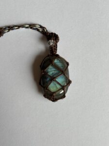 落ち着いたブラウンのマクラメで丁寧に包み込みました。