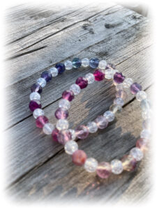 フローライトは、「天才の石」とも呼ばれ、集中力や思考力を高めるパワーストーンとして非常に人気があります。そんなフローライトを今回は水晶と合わせたブレスレットにしました。