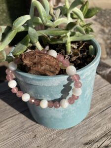 今回はストロベリークォーツとパールの可愛い組み合わせのブレスレットです。